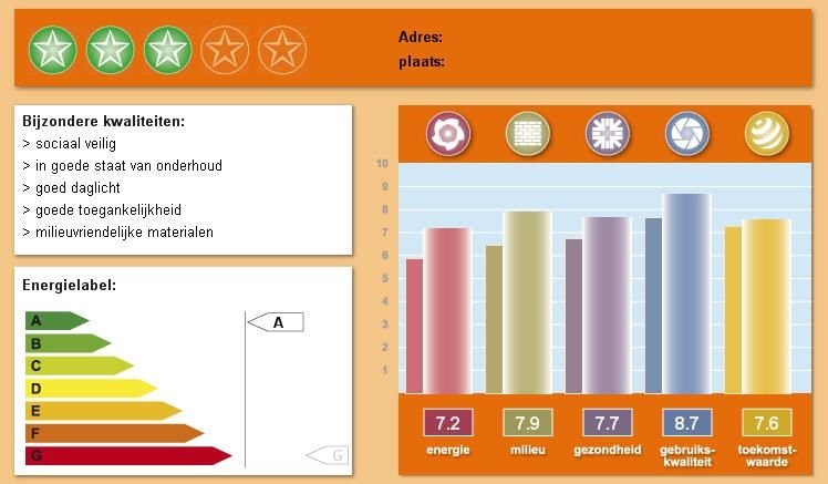 Een gemiddelde score van 9,5 of hoger levert vijf sterren op. Een gebouw krijgt 3 sterren als het een 7,5 scoort.